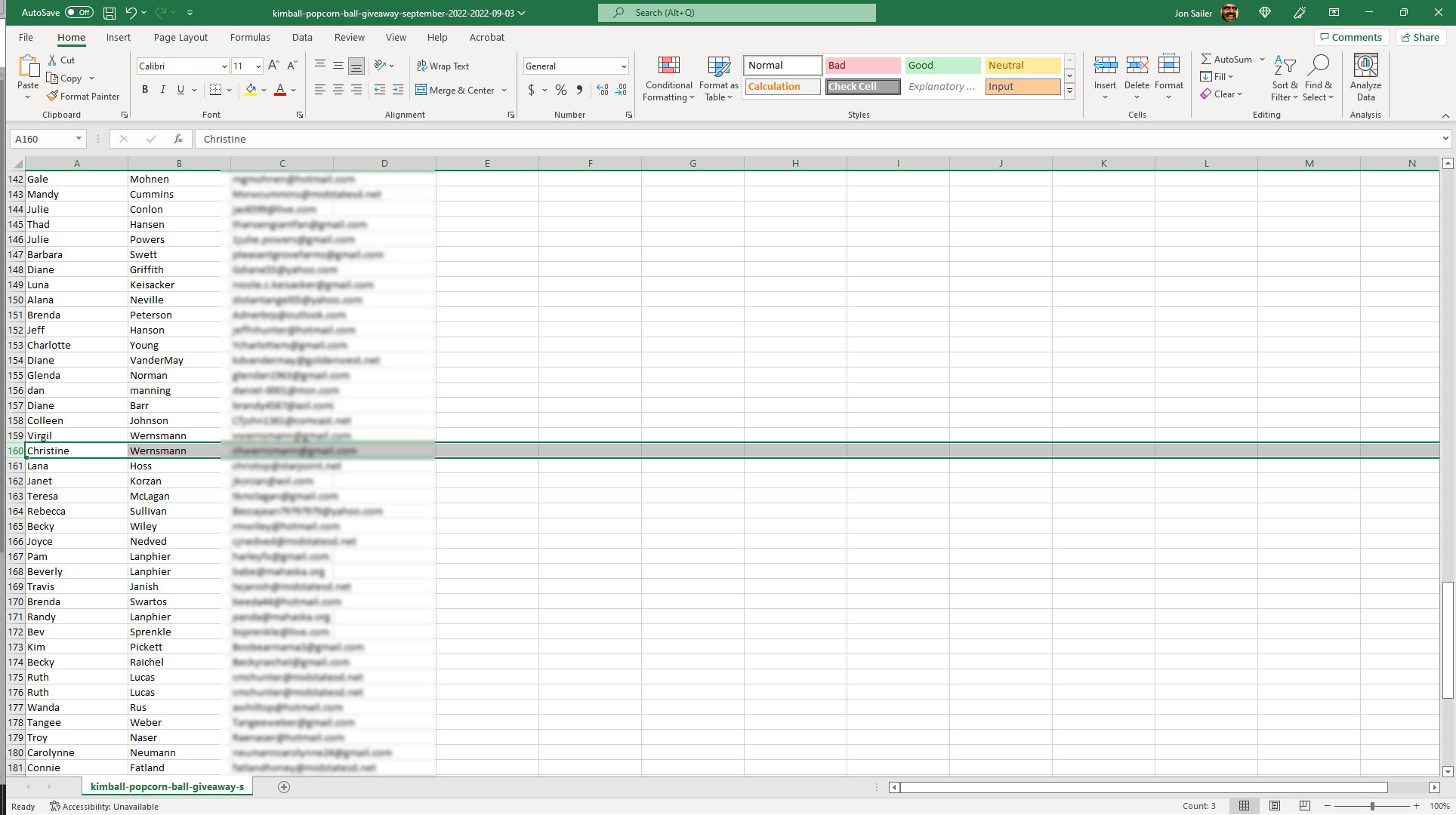 Christine from Coon Rapids, IA is our September Kimball Popcorn Ball Winner! by everythingsd | Sep 3, 2022 | Kimball Popcorn Ball Winners | 0 comments Congratulations Christine we hope you enjoy your case of 24 Kimball Popcorn Balls! Christine choose a case of 1/2 Original and 1/2 Carmel. Our next Kimball Popcorn Ball Giveaway will start Thursday, October 6th at 7:00 AM MT! Submit a Comment Cancel replyYour email address will not be published. Required fields are marked *Comment * Name * Email * Website