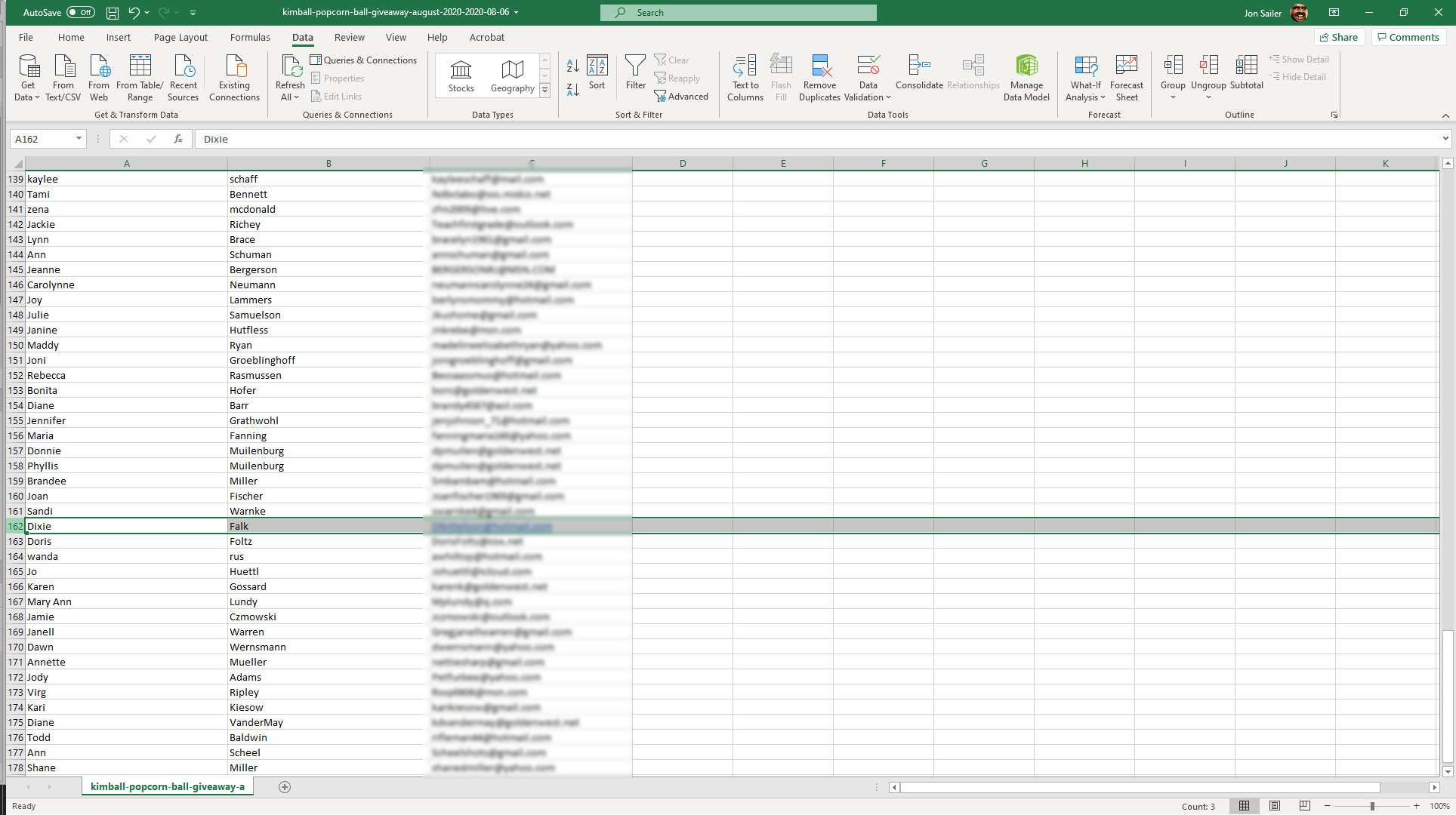 Dixie from White Lake, SD is our August Kimball Popcorn Ball Winner! by everythingsd | Aug 6, 2020 | Kimball Popcorn Ball Winners | 0 comments Congratulations Dixie we hope you enjoy your case of 24 Kimball Popcorn Balls! Dixie chose a case of 1/3 Mix (Original, Honey, Caramel). Our next Kimball Popcorn Ball Giveaway will start Tuesday, September 1st at 7:00 AM MT! Submit a Comment Cancel replyYour email address will not be published. Required fields are marked *Comment * Name * Email * Website