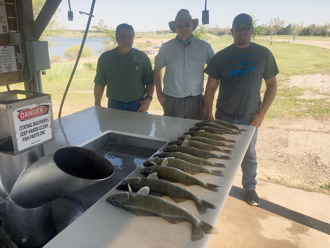 Dave guided his group to the years first limit of walleye on Lake Oahe pitching jigs in 2-6 feet of water back in the Cheyenne River. Water is very dirty and bites were very light. There largest walleye was 19 inches.