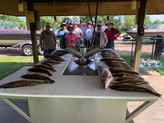 Decided to do this report quick as I am off the water today by two o’clock with limits for four of real nice fish. Actually we had 15 nice walleye in the boat and had thrown back around ten by lunch time at noon. The Denny Cruz family from around St. Edward Nebraska were reeling them in. They are long time repeat customers of mine and I was glad to get that kind of action for them. It was also nice to beat the heat. We caught the walleye in around 14 fow the deepest I have fished so far this year on Oahe. Most of the days I have been in 5 fow to 12 fow pulling spinner/crawler rigs. Many boats are catching the fish deeper so they are kind of scattered but I have found the only reason they are in the shallow water is to feed and that makes them easier to catch. I learned a long time ago that my customers like to catch the easy ones. Before the Cruzes I guided the Hansen group to possession limits then took another of my favorite groups the Robinson bunch from mostly around south west Iowa to full possession limits for 8 people along with walleyes for supper every night. They also got some catfish smallmouth as bonus fish. Jim Lawhon helped me guide this group and we all had a great time. I also took Rick Shumaker from Des Moines out for limits of walleye. Spent one day down on Sharpe in 35 mph wind and we put two boat 20 fish limits (40) in by noon. These fish were eater size around 14 to 15 inchers but on Sharpe because of the 15 inch minimum being off until Sept 1 it is very easy to catch a lot of the smaller fish. I spent all of the rest of the trips on Oahe with limits every day of fish that avg. around 17 inches with plenty of 18 and 19 inchers in the bag every day. I really think the combination of high water and tons of bait has brought Oahe back to a level of fishing that is getting close to the late 90’s. Not as good yet but an amazing fishery for sure. I also am seeing as much boat traffic as we have had for maybe ever but with the high water you can find lots of places to fish without fishing around other boats if you want to. Boat ramps are crowed though so be prepared for possible waits at the ramps and the cleaning stations. For the most part I think everyone is catching fish. Oahe fish are biting on crawlers, leeches, minnow and plugs so pick your favorite presentation. Depths range from 5 fow out to 30 fow so depending on where you are at finding them can be tougher some days. I will repeat my tip about Bermuda shorts. Just great for cool comfort and a little sun but bring a pair of sweat pants or long pants along. If you end up in an area of biting fly’s you will be glad you can quit slapping even if you are a little uncomfortable. Lots of Gatorade water also as 100 degree days can bring on real problems (heat stroke) IF YOU GET DEHYDRATED. A real no no. I always mention every other report or so that catching the walleye and eating them is great but to experienced angler’s finding the fish is an equal if not the most important part of the sport. Walleye can be hard to find but what separates the average angler from the great ones is the ability to hunt and find the fish. If you learn to hunt fish and find them you are on the road to enjoying the whole sport. You will also catch a lot more and bigger fish if you find your own spots away from other boats and community spots. It is not hard to find another boat with a net out but it is hard sometimes to find and catch your own fish. If you do find them the rewards of knowing that you did for many is worth it. We have a great fishery this year and in closing a big thank you to our Game Fish and Parks department for their part in helping make it so.