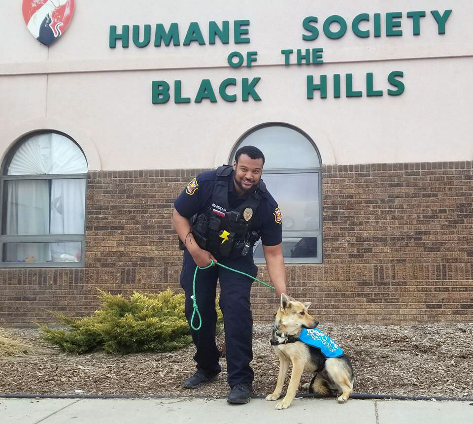 We’re starting a new program called #K9ForADay. In partnership with the Humane Society of the Black Hills, we’ll be pairing up an animal in need of adoption with one of our officers during their daily duties, all in hopes of getting the featured pet adopted!