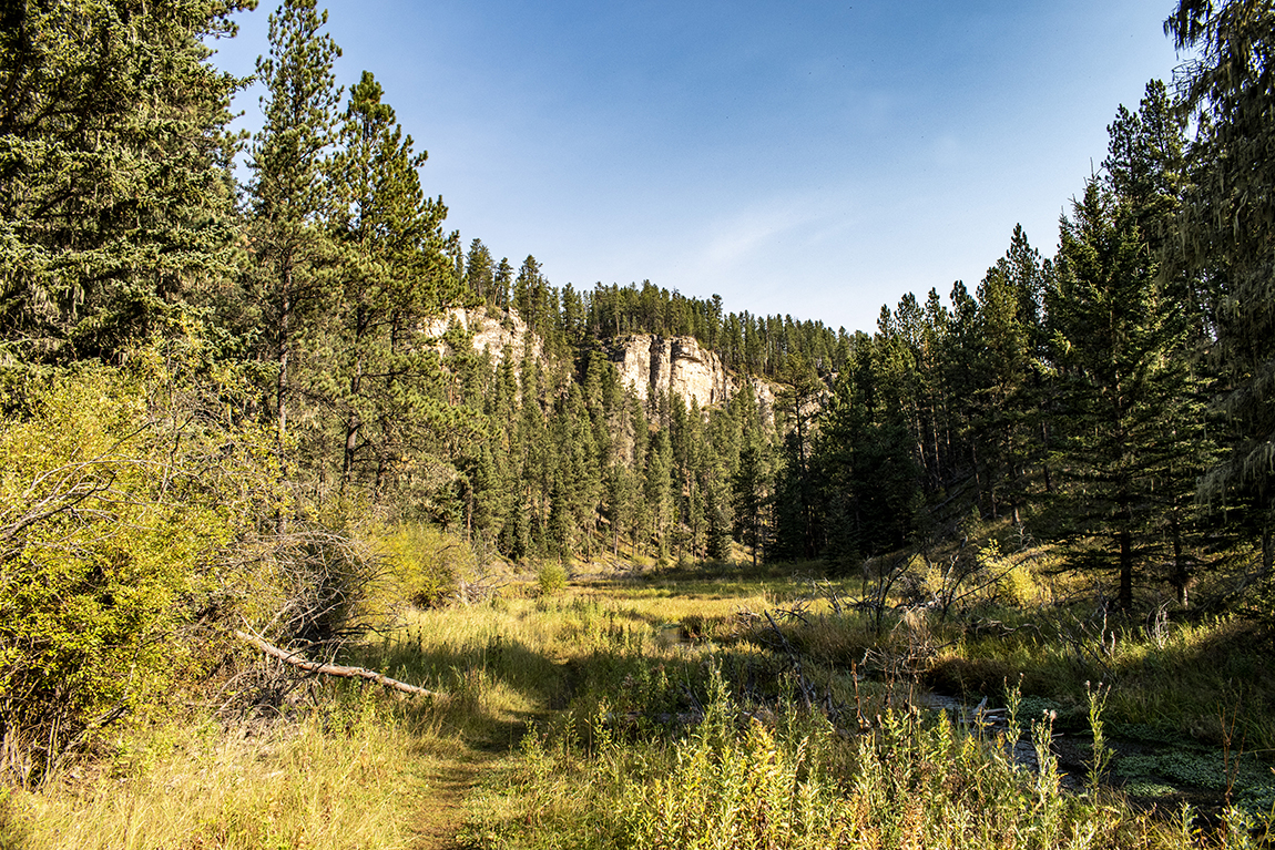 I checked out Little Spearfish Trail this morning. If you go past Roughlock Falls maybe a mile or two you will find the trail head parking lot just passed Timon Campground. The trail snakes along Little Spearfish Creek and it’s an easy hike, and very beautiful scenery. Below are some photos I took, hope you enjoy.