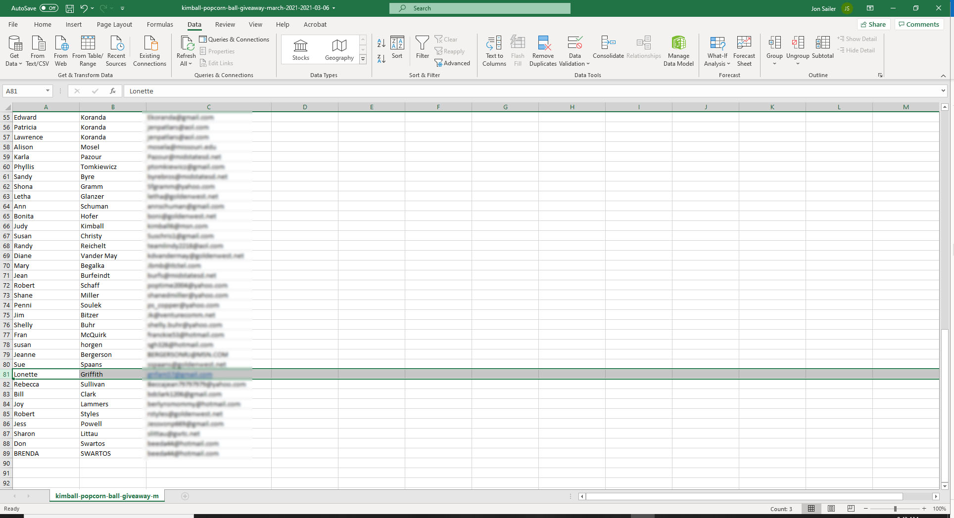 Lonette from Parker, CO is our March Kimball Popcorn Ball Winner! by everythingsd | Mar 6, 2021 | Kimball Popcorn Ball Winners | 0 comments Congratulations Lonette we hope you enjoy your case of 24 Kimball Popcorn Balls! Lonette chose the 1/3 Mix (Original, Honey, Caramel). Our next Kimball Popcorn Ball Giveaway will start Thursday, April 1st at 7:00 AM MT! Submit a Comment Cancel replyYour email address will not be published. Required fields are marked *Comment * Name * Email * Website