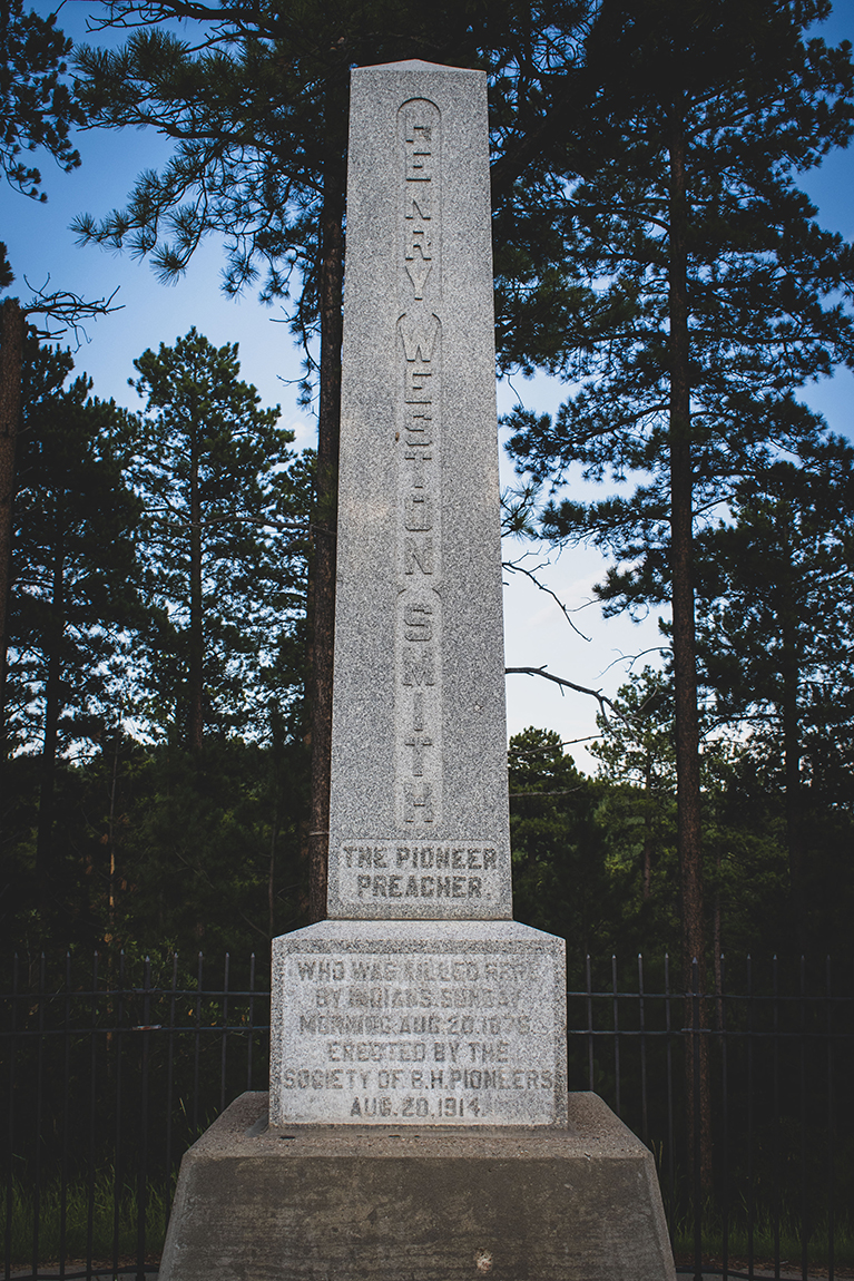 Preacher Smith’s resting spot is located at Mt. Moriah cemetery in Deadwood. Along Highway 85 heading into Deadwood the Society of Black Hills Pioneers erected a monument on August 20, 1914 at the approximate location where Preacher Smith’s body was discovered on the morning of August 20, 1876.
