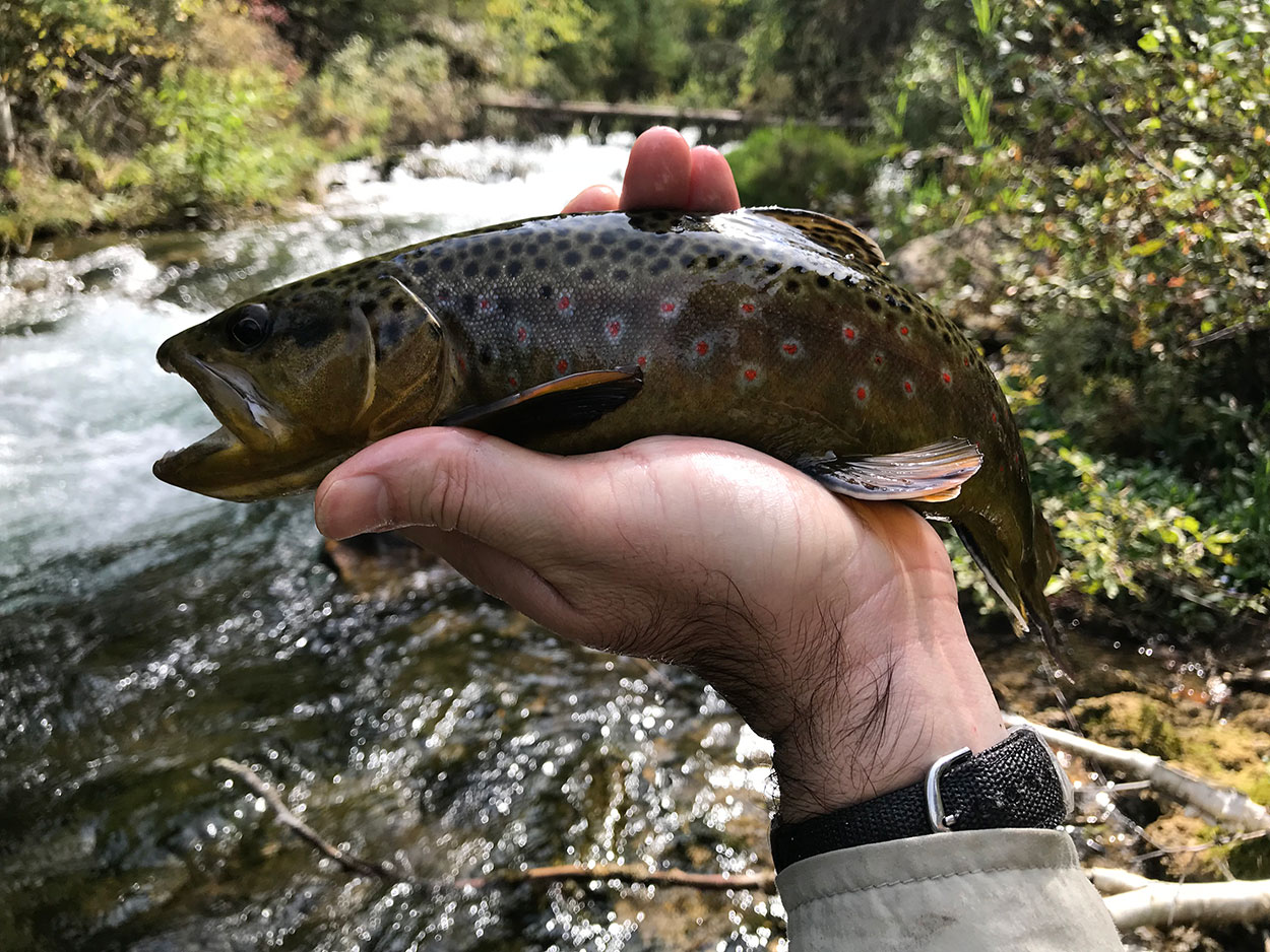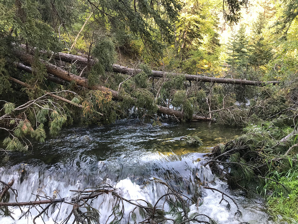 This area of the canyon had a tornado come through, or just some really strong wind. There are fallen trees all along the creek making it hard to navigate. But, they make for some good fishing spots. The fallen trees slow down the flow and I saw some browns hanging out among the branches.