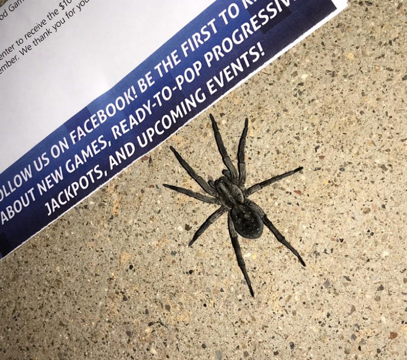 - Took this photo of a Thin-Legged Wolf Spider outside our garage. He was big enough to carry a small dog away.