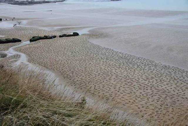 9,000 Fallen Soldiers Etched into the Sand on Normandy Beach to Commemorate Peace Day.